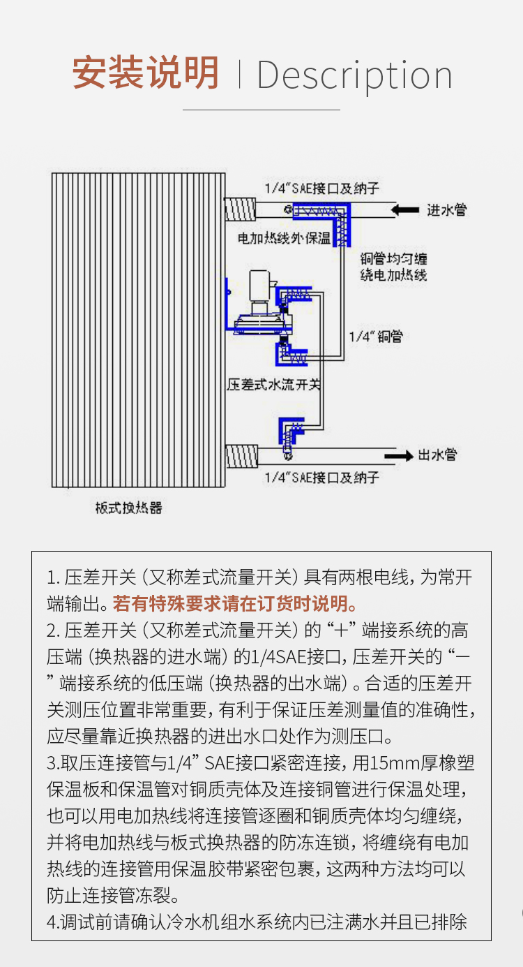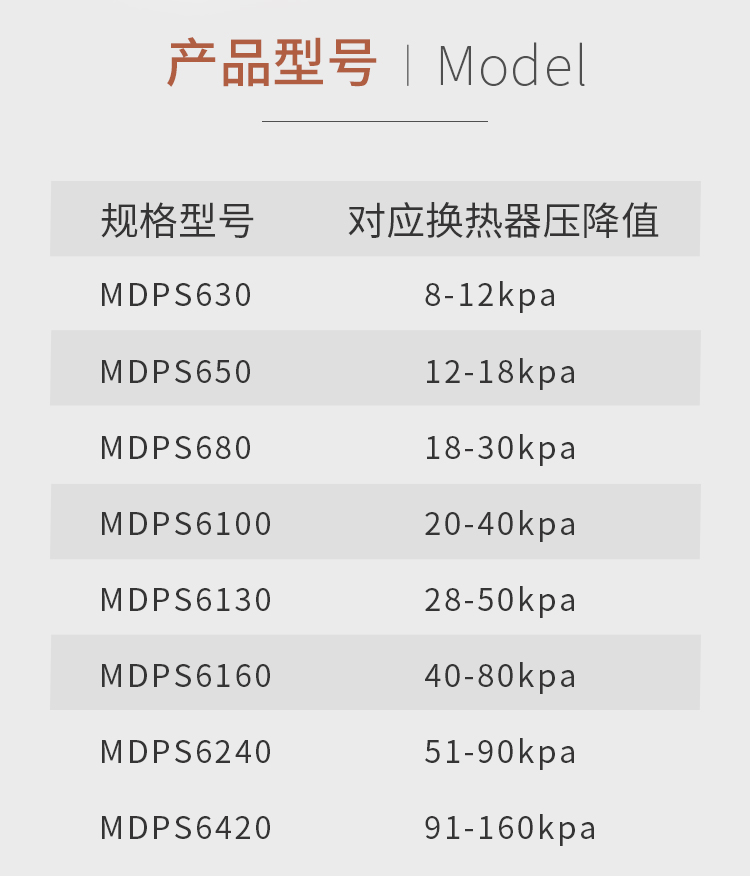 MPDS6系列壓差開關(又稱壓差式流量開關)在HVAC系統中的應用主要是根據HVAC設備的阻力和流量的曲線進行控制的,我們知道HVAC設備的換熱器(套管式、殼管式、管闆式和常用的闆式換熱器)、水過濾器、水泵及閥門等設備都有其壓降(阻力)與流量的性能曲線,隻要檢測換熱器兩端的進出水壓差,并與該設備的預先設置值進行比較,就可以準确控制流量。壓差開關(又稱差式流量開關)作爲流量控制開關具有流量控制準确、對系統不再附加阻力、又對水管管徑沒有要求以及無水流擾動幹擾等優點,因而可廣泛應用在使用焊闆式換熱器、套管式換熱器和殼管式換熱器的大中小型風冷或水冷冷水機組中,起到水流量檢測和控制、防凍保護的功能。