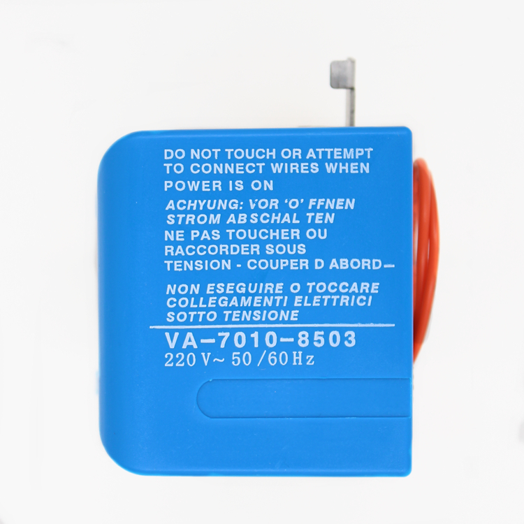 VA7010系列風機盤管電動閥适用于風機盤管水流通斷控制,産品由VA7010系列閥門驅動器和VA7010系列銅閥組成。驅動器由單向磁滞同步電機驅動,具備彈簧複位及手動開閥杠杆操縱功能。閥門不工作時處于常閉狀态,當需要工作時,由溫控器提供一個開啓信号,使電動閥接通交流電源而動作,開啓閥門,冷凍水或熱水進入風機盤管,爲房間提供冷氣或暖氣;當室溫達到溫控器設定值時,溫控器令電動閥斷電,複位彈簧使閥門關閉,從而截斷進入風機盤管的水流。通過閥門關閉或開啓,使室溫始終保持在溫控器設定的溫度範圍内。